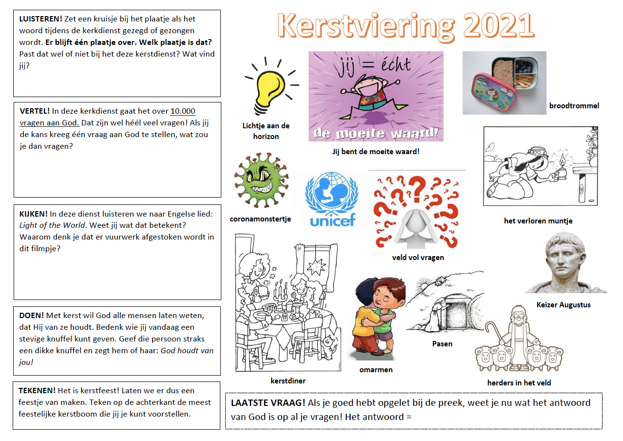 Speciaal voor tijdens de kerstdienst op eerste kerstdag heeft de dominee een werkblad voor de kinderen gemaakt.